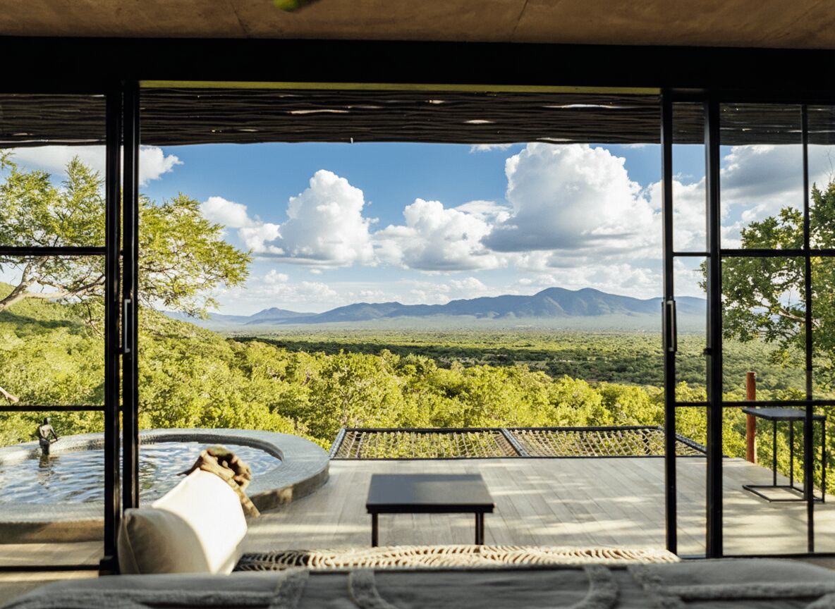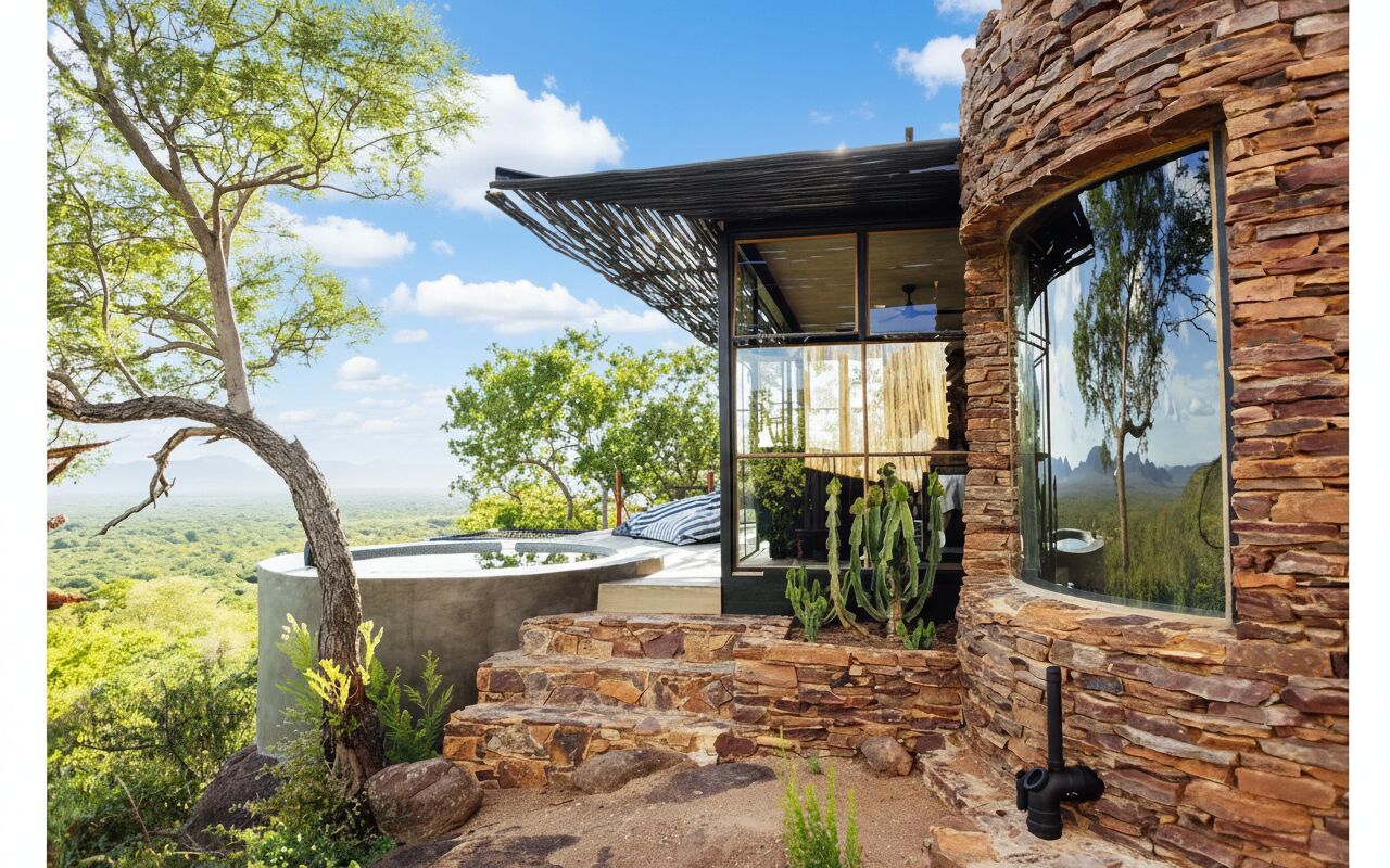 Designed to harmonize with its natural surroundings, Ebony’s sculptural form organically rises from the earth, framing endless horizons and the gentle roam of wildlife across the plains below. At night, the African sky becomes your celestial canopy — a mesmerising theatre of stars.