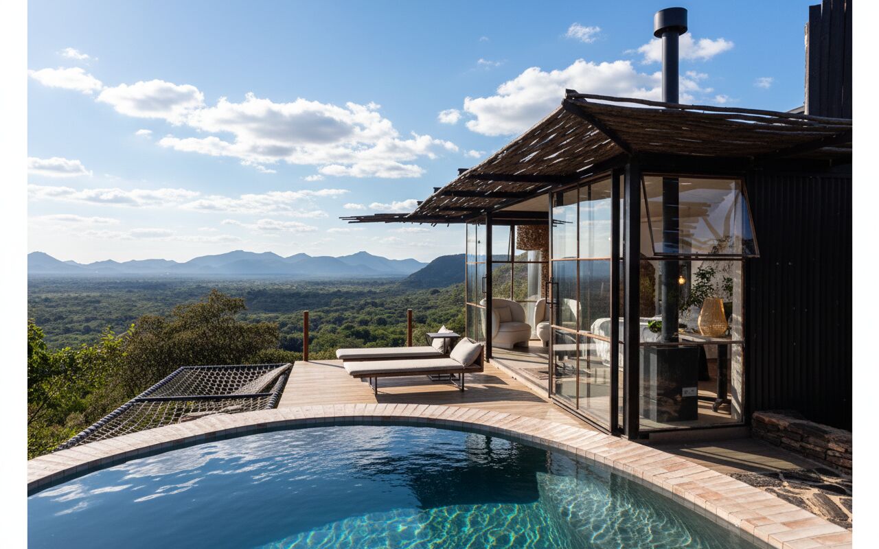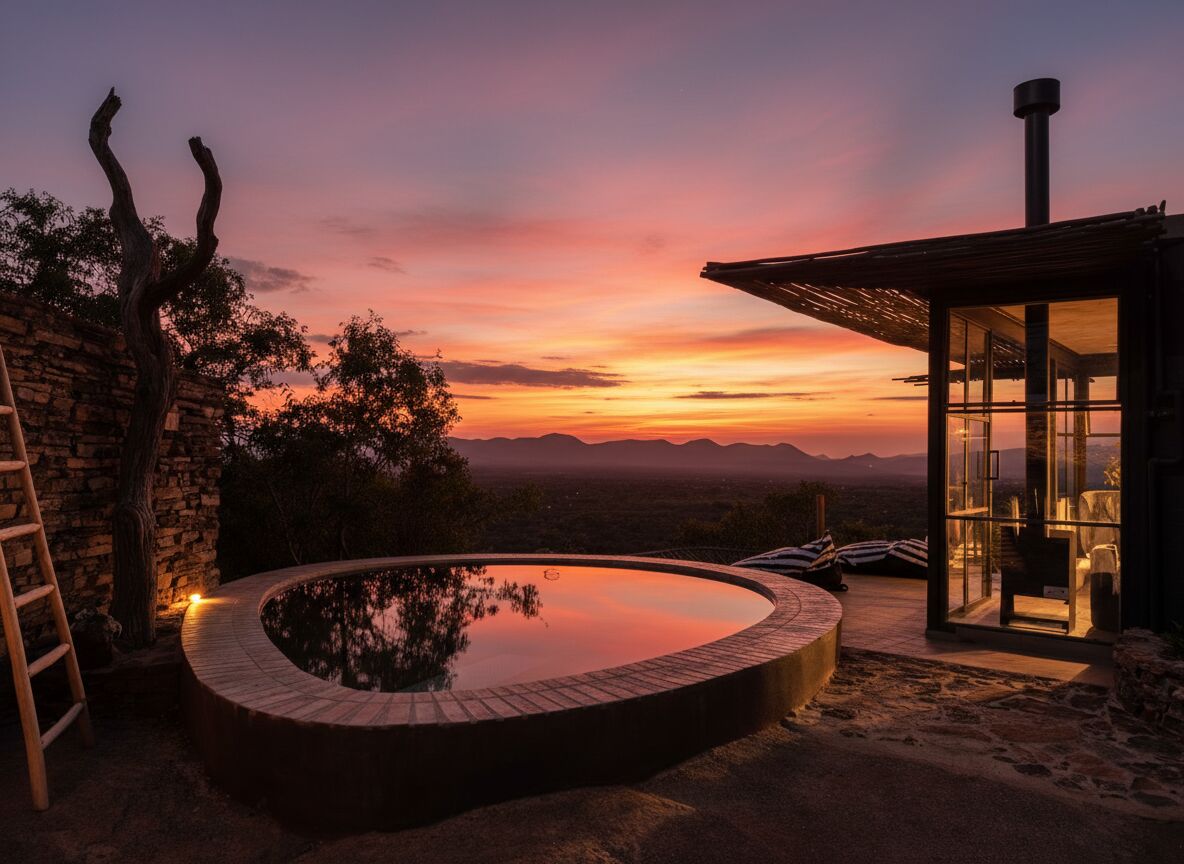 +27 60 942 5016Discover Ivory, an elegant luxury pod perched atop the highest ridge of Cypiro Leopard Lodge. Nestled within the Waterberg wilderness, Ivory invites you to relax, reboot and renature in a setting where modern comfort blends seamlessly with nature’s rhythms.